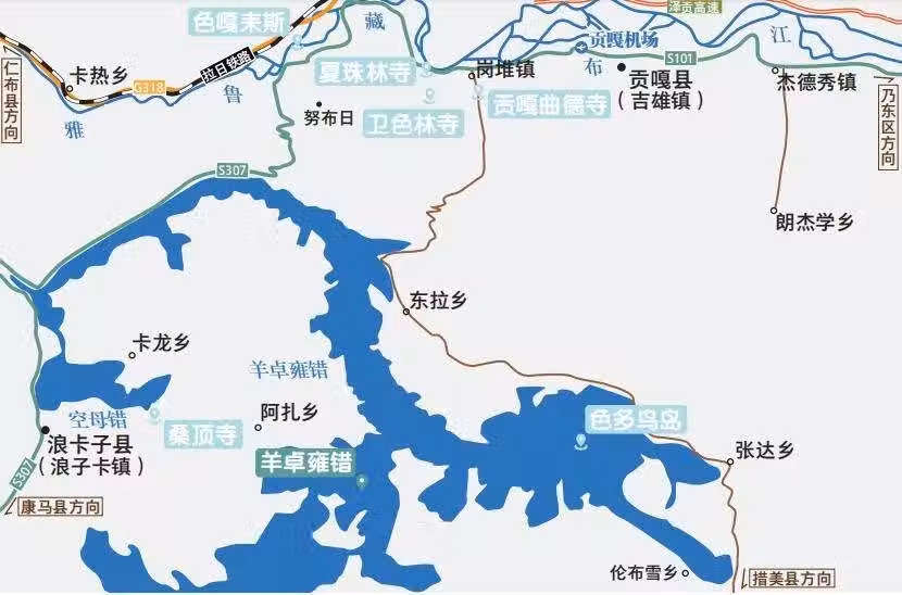 羊卓雍措的形狀宛如珊瑚