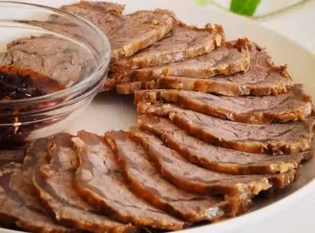 牛腱子肉、老滷汁、蔥、桂皮、姜、八角、蒜、花椒、冰糖、茴香、鹽、香葉、醬油、干辣椒