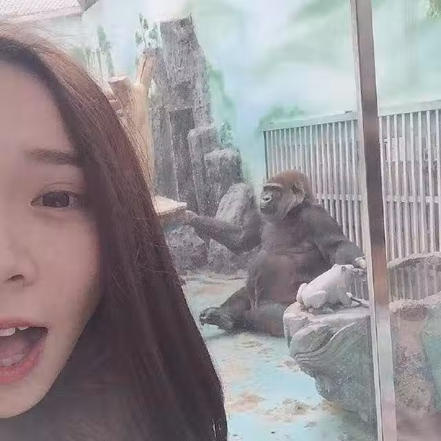 妹子在動物園跟猩猩拍照,回家看照片才發現不對勁!