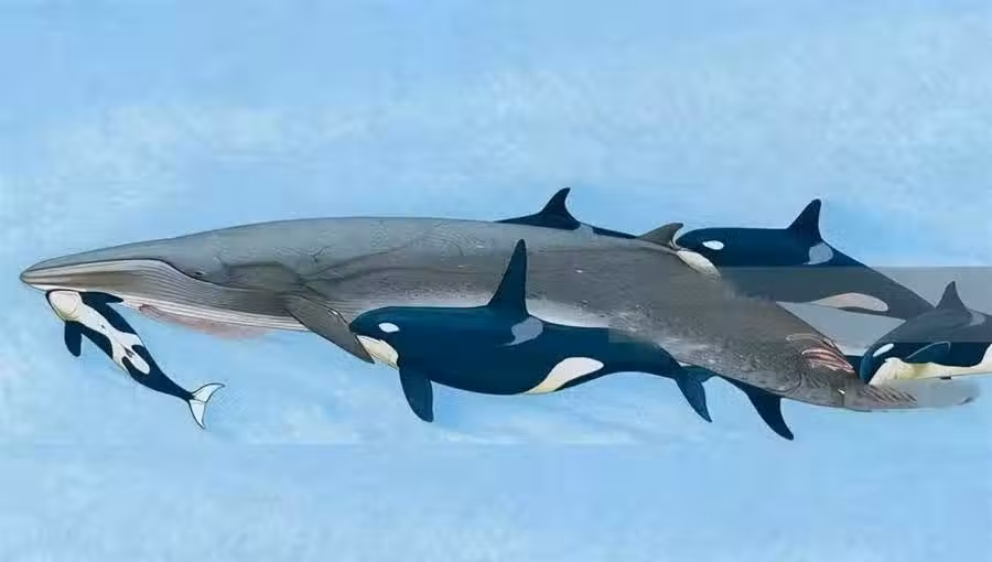 15米藍鯨誤入領地,遭75頭虎鯨圍攻,硬抗三小時後落敗,海鳥集群與虎鯨共食藍鯨肉