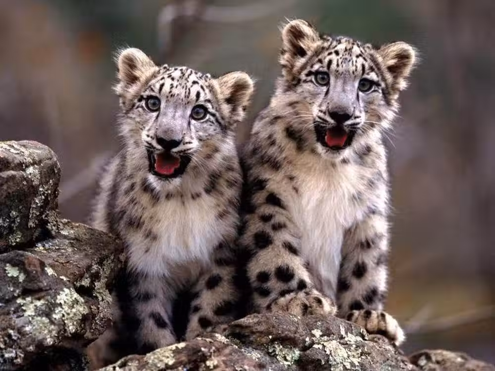 喜馬拉雅山上發現一隻母雪豹,把巢穴安在陡峭的懸崖巖洞裡,經過大約3個月的妊娠期,生下了兩隻幼崽。有了幼崽之後,母雪豹就很少自個兒趴在巖石上曬太陽了,不是出去捕食,就是守護著幼崽,給幼崽哺乳。