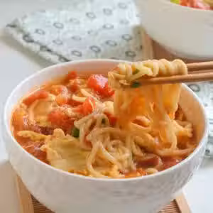 6、待雞蛋稍微凝固後再開大火,煮到麵條成熟即可。