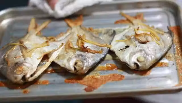 鯧魚3條,姜適量,檸檬適量,辣椒粉適量,孜然適量,橄欖油適量