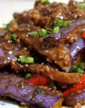 茄子;黃醬;紅辣椒;蔥;蒜頭;姜;肉末;生粉;生抽;料酒;白糖;雞粉