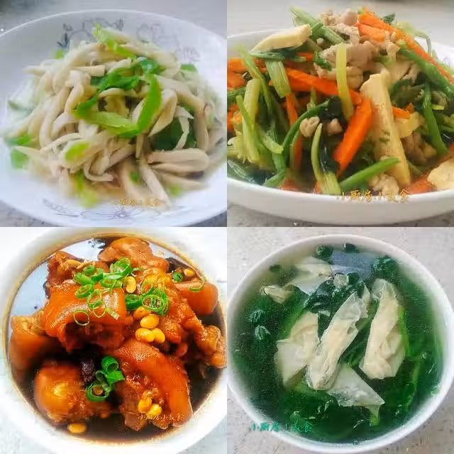 【週四】淮揚小炒 、杏鮑菇青椒木耳香腸 、茄子燜豆角 、大骨燉蘿蔔湯
