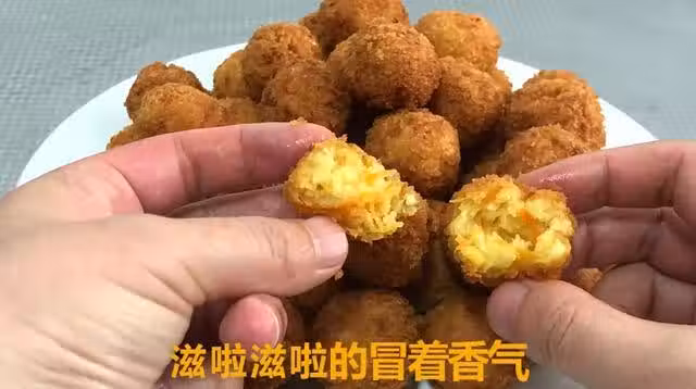 看丸子剛出鍋,掰開來還冒著熱氣,聞著味道就香噴噴的好吃,胡蘿蔔稍微帶點甜味,吃起來真香鮮呀,一口一個特別好吃哦,喜歡的朋友你也試試吧。