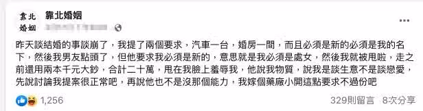 未婚夫是藥廠小開!女方要求結婚「要買新房+新車」登記她名下 男友秒答應「可以,那妳也要是新的」