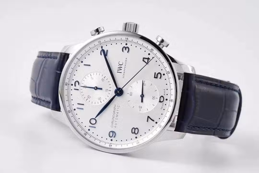 這款腕錶為葡計「150周年」特別版,白色漆面錶盤有一定的光澤感,潔白盤面搭配經典藍針簡潔大方。腕錶直徑41毫米,厚度13.1毫米,由於搭載自產69355機芯機芯因此錶殼厚度和高度都較以前有細微變化。採用背透設計,機芯做了日內瓦波紋及魚鱗紋打磨,可提供46小時的動力儲備。雖然它是一枚計時表,卻兼顧了優雅和大氣,可以讓正裝風格變得不那麼嚴肅,反而成了搭配正裝的利器。