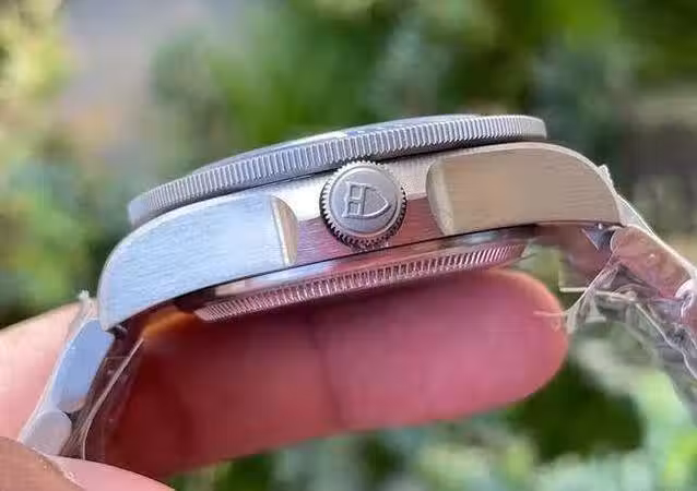 側面錶殼採用橫向拉絲的工藝處理,拉絲細膩程度很飽滿,中央凸起位置是錶冠設計和帝舵的經典標誌,外側齒輪設計更加方便時間的調試,錶殼厚度無異,表耳和錶帶的銜接處順暢自然,上手佩戴更加貼合手腕。