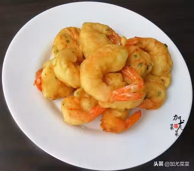 4、鍋里油溫熱之後,手拎著蝦尾,均勻裹上面糊,下鍋炸。小火慢炸,2面金黃撈出盤子,等過了10多分鐘,過濾下油,重新下鍋復炸一遍,這樣鳳尾蝦會很酥脆。