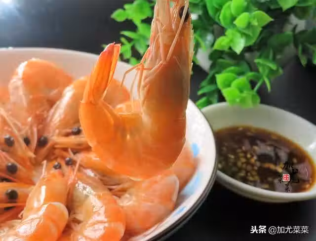 2、蒸好的海蝦,第一時間放入冰水中冷卻幾秒後撈起擺盤,這個小竅門能快速地鎖住蝦的鮮味,以及提升蝦表面的鮮亮度。