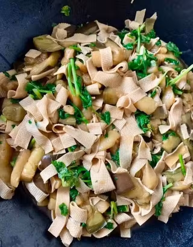 豆腐皮中的膳食纖維可以促進腸道蠕動,幫助排便,而茄子中的果膠和膳食纖維可以促進腸道蠕動,促進排便。這道豆腐皮燒茄子不僅營養豐富,而且味道鮮美,是一道清腸養生的佳品。
