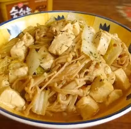 韓國大醬少許;新鮮豆腐一塊;白菜葉6片;金針菇100g;醬油少許;鹽適量