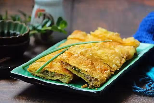 包好放入油鍋,微微炸制,出鍋的「餅」香酥嫩,不管是當早餐還是下酒菜,都可以說是最佳選擇了~