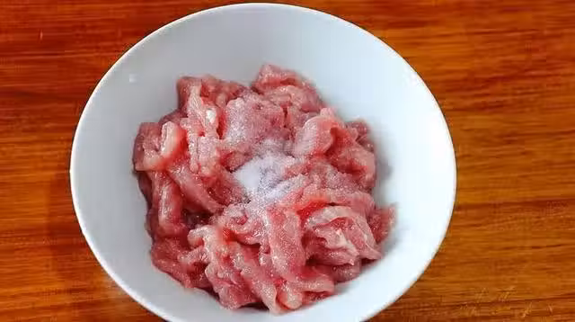 4、鍋中燒水,將腌制好的肉放入水裡面焯水變色,撈出;