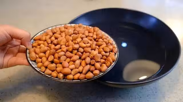 1、 花生米用水清洗一下,撈出瀝干水分。
