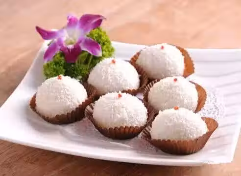 【做 法】 先把500克的糯米粉,沖入350克的開水,攪拌成柔軟的粉團,再投進開水鍋中煮至粉團浮上水面,使粉團成熟,然後撈起放進盆中,用一木棍順同一方向用力攪拌,使已煮熟的粉團更加純滑,然後兩手沾上熟油,捏出糯米粉團約20克,用手搓成圓件,壓薄,沾上炒香的白芝麻、炸香的花生仁碎,白糖粉即成。