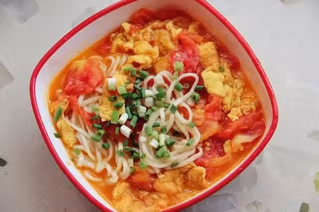 雞蛋1個、番茄2個、雞精、鹽、食用油、蔥、麵條