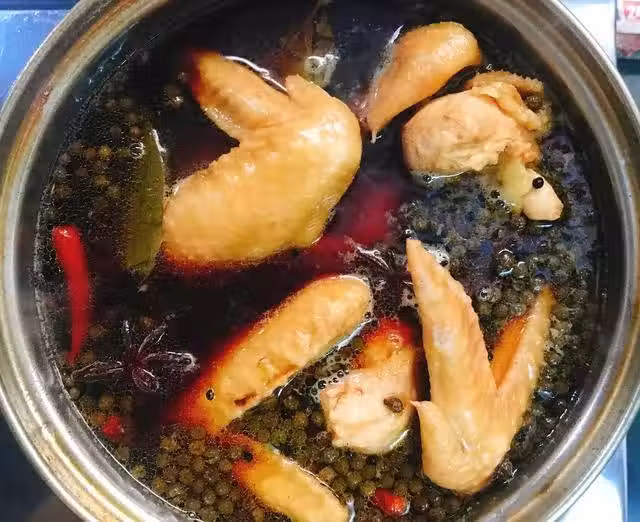 B:八角3塊 肉蔻2粒 桂皮1塊 小茴香1把 草果2粒 干辣椒2根 花椒1把 月桂葉3片 陳皮1塊 甘草片3片 山奈3粒。