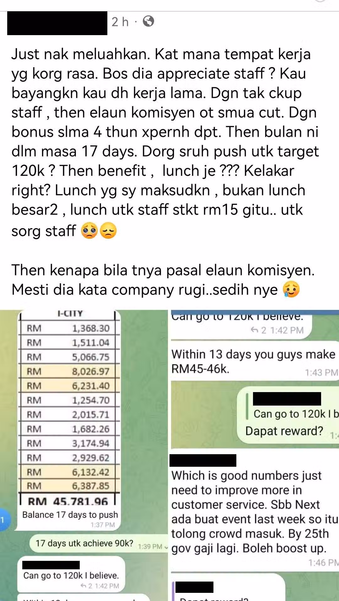 【工作4年沒花紅!】老闆要求員工「業績要達RM120k」只獎勵RM15午餐!