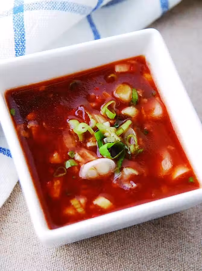 a.蕃茄醬1又1/2大匙,醬油膏1大匙,白醋1大匙,香油1茶匙,糖1大匙