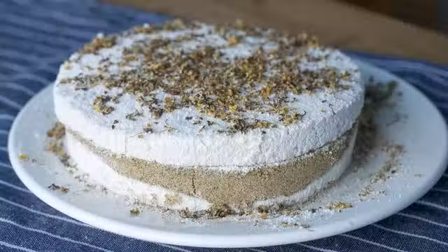 2、一層糕粉,加上一層桂花粉,我一共是做了兩層,這個可以自行增加層數,只是複雜了點,做出來效果更好哦;