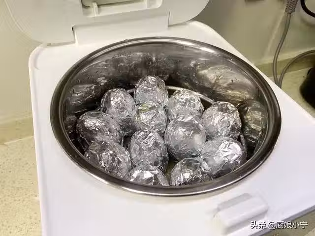 6,放入電飯煲中,放入鴨蛋一半高的水分。選擇營養蒸模式加熱,我的鍋一個過程是40分鐘左右。