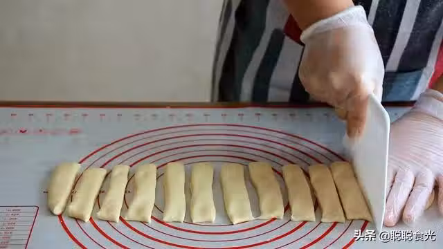 步驟七:用刀分割成一指半左右的寬度,放在一旁靜止5分鐘醒一下,醒過的面延展性好不容易回縮,如果屋裡太干,表面蓋濕布或者保鮮膜。