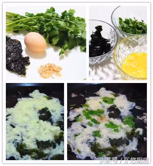 第三步:鍋中倒入適量的水,再放入一點點鹽。水燒開後將紫菜放到鍋中煮開,然後將蛋液緩緩的倒入鍋中。(不要攪動,蛋液隨著水煮開,會慢慢的飄起來)