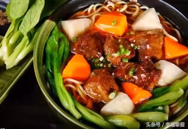 牛肉500克,麵條500克,小白菜250克,水10杯,蔥4根,姜2片,大蒜8粒,八角4粒,辣椒1根;醬油1杯、水6杯、酒1湯匙、辣豆瓣醬1大匙,麻油少許。