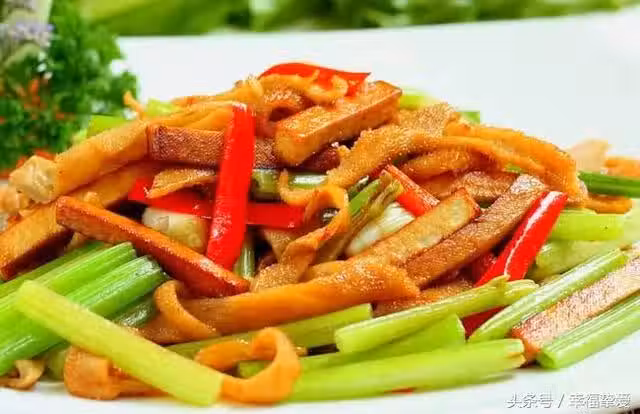 用料:芹菜一小把、香乾兩三片、薑末、蒜末、蔥花、花生油、胡椒粉、醬油、鹽、雞精。
