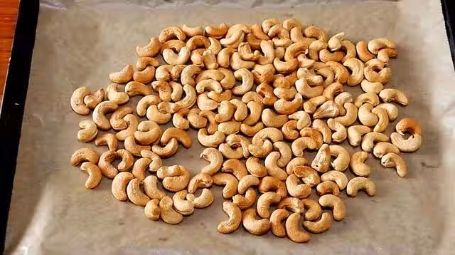 4:中火慢熬,用鏟子不停攪拌,熬製糖水起大泡泡換小火慢熬,熬至糖水起小泡泡關火,將腰果倒入鍋中不斷翻炒,炒到腰果表面的糖霜反沙變白即可出鍋;