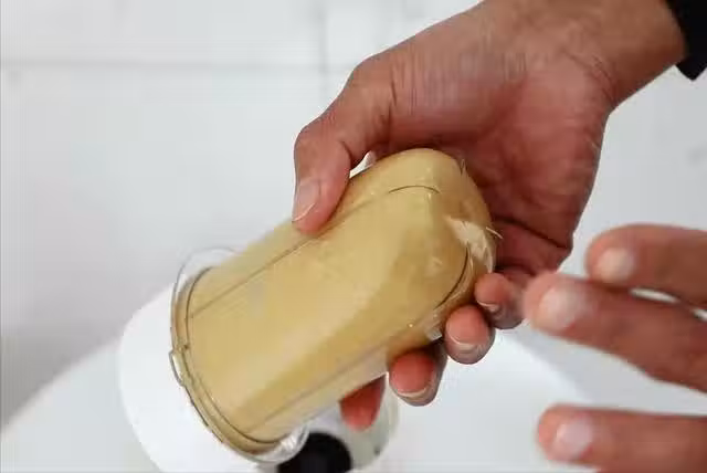 4、一直打磨至看不到芝麻碎、呈細膩的糊狀時,我們的芝麻醬就做好了。