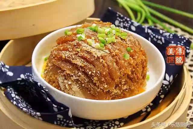 第一步:準備食材。五花肉400克、紅薯100克、蒸肉粉150克、姜5克。(蒸肉粉在超市可以買到,很常見)