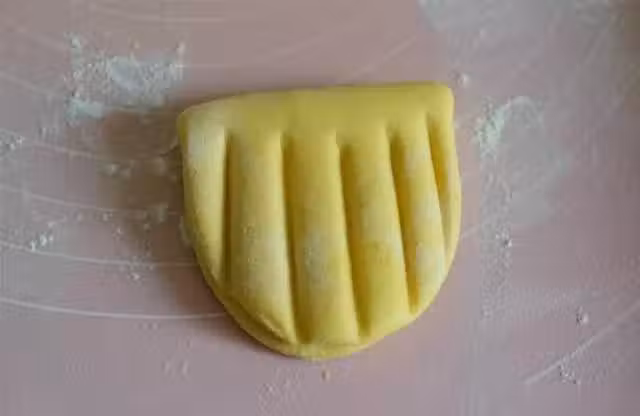 7、再使用刀背在面上壓一些印,如圖。