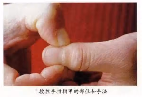 按捏兩手的拇指、食指、中指和小拇指的指甲生長邊緣的角部(見照片所示),由於多數疾病是因為交感神經處於優勢狀態時引起的,所以原則上不按捏無名指。