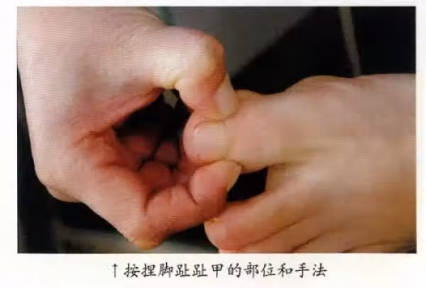 在指甲按捏療法的同時,結合運用腹式呼吸法的原理:吸氣時,小腹鼓起,膈肌下降,肺泡通氣量增多,呼氣時,小腹內收,膈肌上升,肺泡排氣量增大。