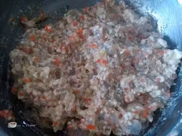 7、為了讓蝦尾也入味,將蝦尾加入一點鹽稍微抓一抓。