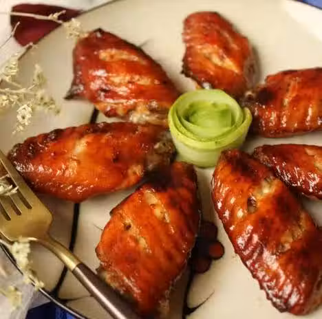 主料:雞翅中9個、蜂蜜20毫升、蚝油1勺、番茄醬1勺