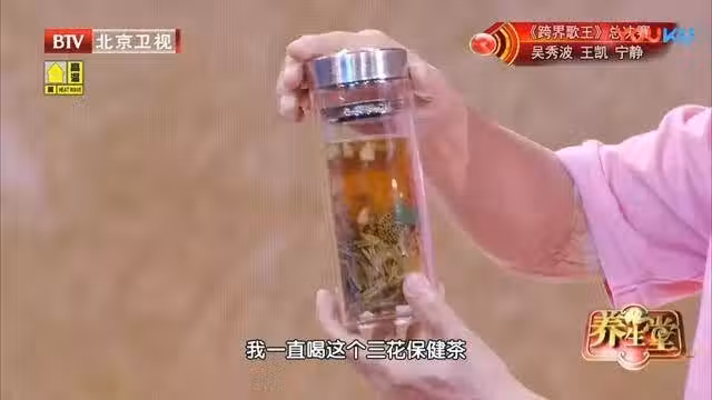 李老介紹,人每天需要補充1500ml左右的水,他每天早上起床後會喝500ml的溫開水,然後上午服用400ml的三花茶,下午服用400ml,晚上吃完飯後再服用200ml,每天大約要喝掉1000ml三花茶。