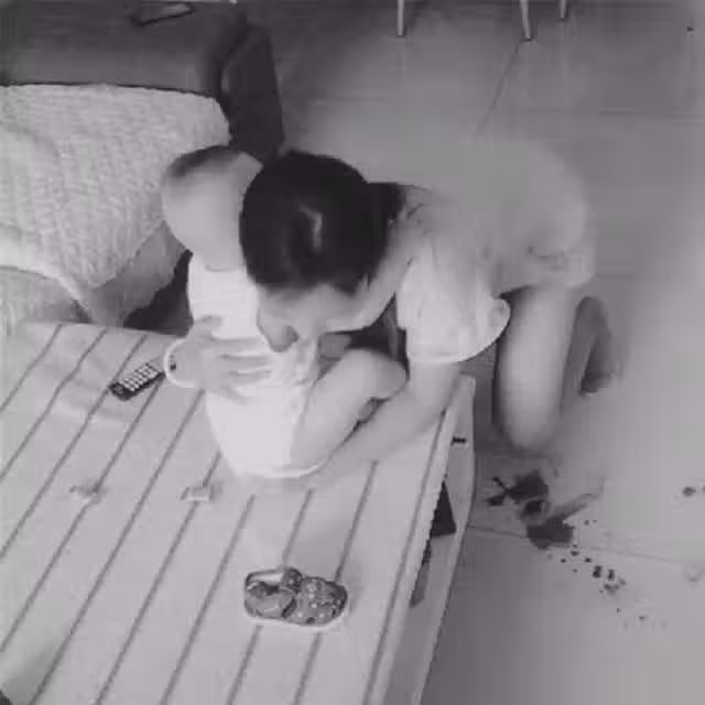 有一次兒子還特別調皮,打翻了桌子上的熱粥,妻子聽到了聲音馬上跑過來,還一個踉蹌、摔倒了,即使膝蓋摔破了皮,她也是先來抱了抱兒子。