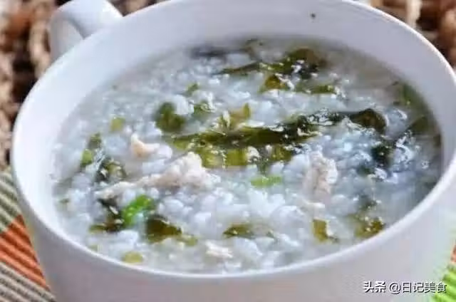大米200g/紫菜1小張/干蝦8隻瘦肉/蔥/姜/蒜/食鹽/雞精/香油