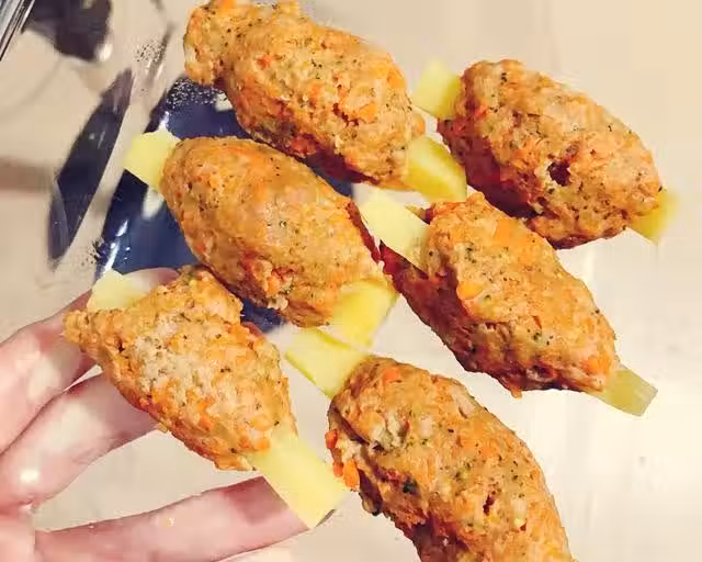 牛肉20-30克;土豆半個;姜3-4片;胡蘿蔔大拇指一節;西藍花一小朵;澱粉一勺