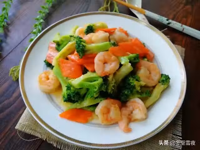 所需材料:冷凍蝦仁200克、西蘭花1/2棵、胡蘿蔔1段、油鹽適量、大蒜2瓣、料酒1/2湯匙、白鬍椒粉1/2茶匙、澱粉1/3茶匙、雞精1/2茶匙、