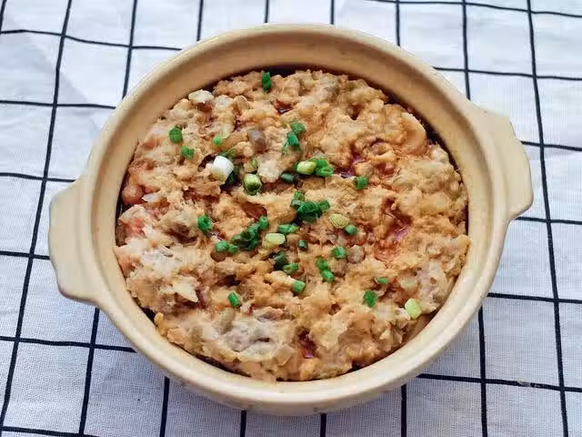鋪上肉沫,蓋蓋子小火煮10-15分鐘,主要是肉要熟,起鍋前可以拿勺子挖一下面上的肉看熟了沒有