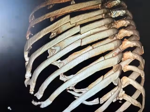 送到急診檢查發現,老汪的右側1~10肋骨,左側1~4肋全都骨折了,右側頸部積氣,因無法順利咳痰,需要轉入ICU進行氣管切開。