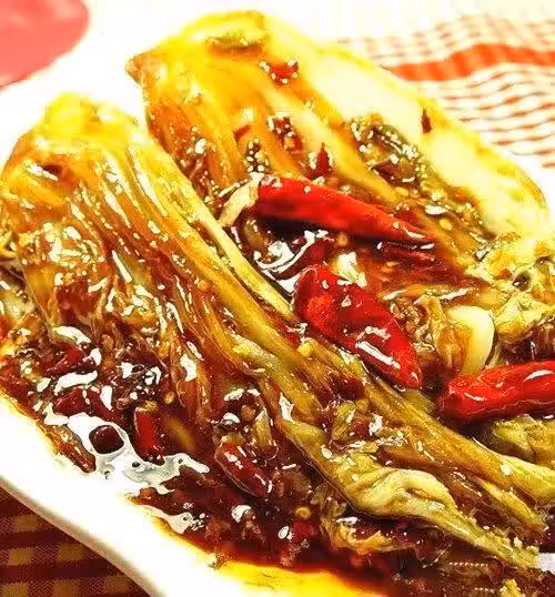 食材:白菜、干紅辣椒、醬油、鹽、醋、薑末、濕澱粉、芝麻油、菜油、白糖