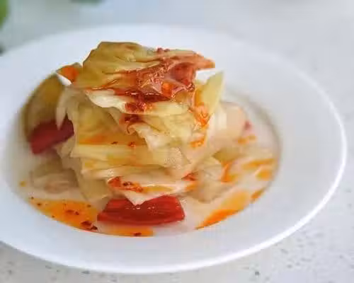 11)腌漬好的泡菜,澆上一點辣椒油吃起來味道酸辣開胃。