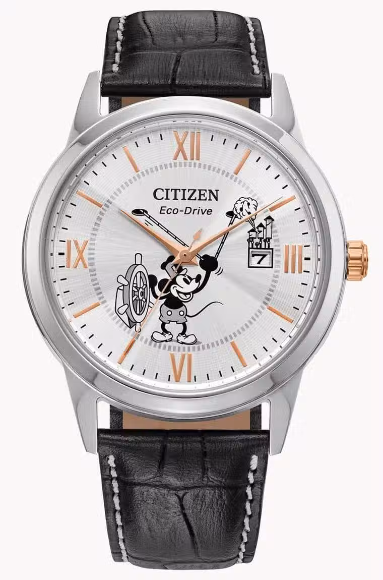 CITIZEN將會以1920年代起頭,每十年推出一款代表性作品,並以每個月發表一~兩款的頻率推出上市,品牌迄今已經發表了前三款錶。1920年代的主題是黑白風格的米老鼠,他拿著汽船威力號的船舵,看起來很有早期迪士尼卡通的復古感。手錶擁有特製錶盒,除了手錶本身以外,CITIZEN和迪士尼還會附上一枚紀念徽章供錶主收藏。