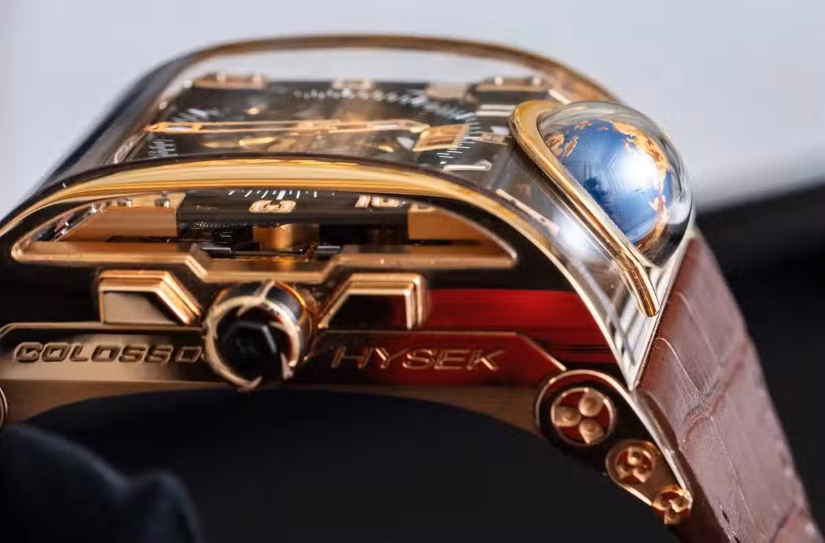 旅行三問表很少見——主要是因為它們的實用性有限,手錶的要點是在旅行時使用,這樣佩戴者就可以知道自己的家鄉時間和當地時間。在Colosso中,第二時區通過表殼底部的兩個線性顯示來表示。推動器在參考城市窗口中移動一個圓盤,以便用戶知道他們正在閱讀時間的世界其他地方的相對位置。